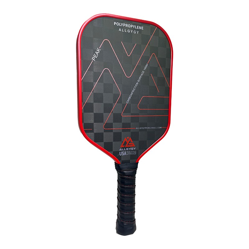 Преимущества формы ракетки: Весло Pickleball ALLGYGY PEAK A1 Лопатка Pickleball из углеродного волокна 18K имеет более короткую ручку и более короткую и широкую поверхность клюшки. В результате получается более широкая зона наилучшего восприятия, а не более длинная.